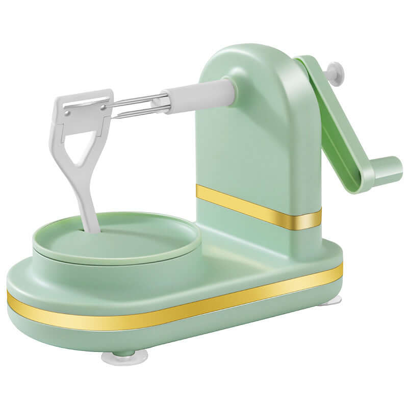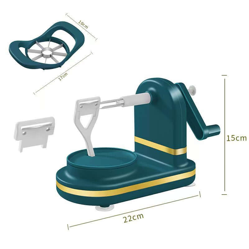3-in-1 Obstschäler mit Apfelspalter – Praktisch mit Kurbel & Saugnapf